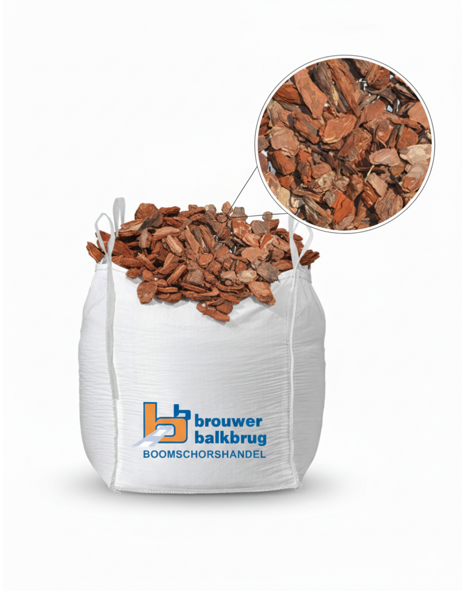 Deze hoogwaardige Franse boomschors 18-25 mm is afkomstig van de Franse pijnboom (Pinus Maritima). Deze schors staat bekend om zijn sterke, harde structuur en prachtige roodbruine kleur. Dankzij de hoge kwaliteit heeft deze decoratieve boomschors een lange levensduur van maar liefst 4 tot 5 jaar.